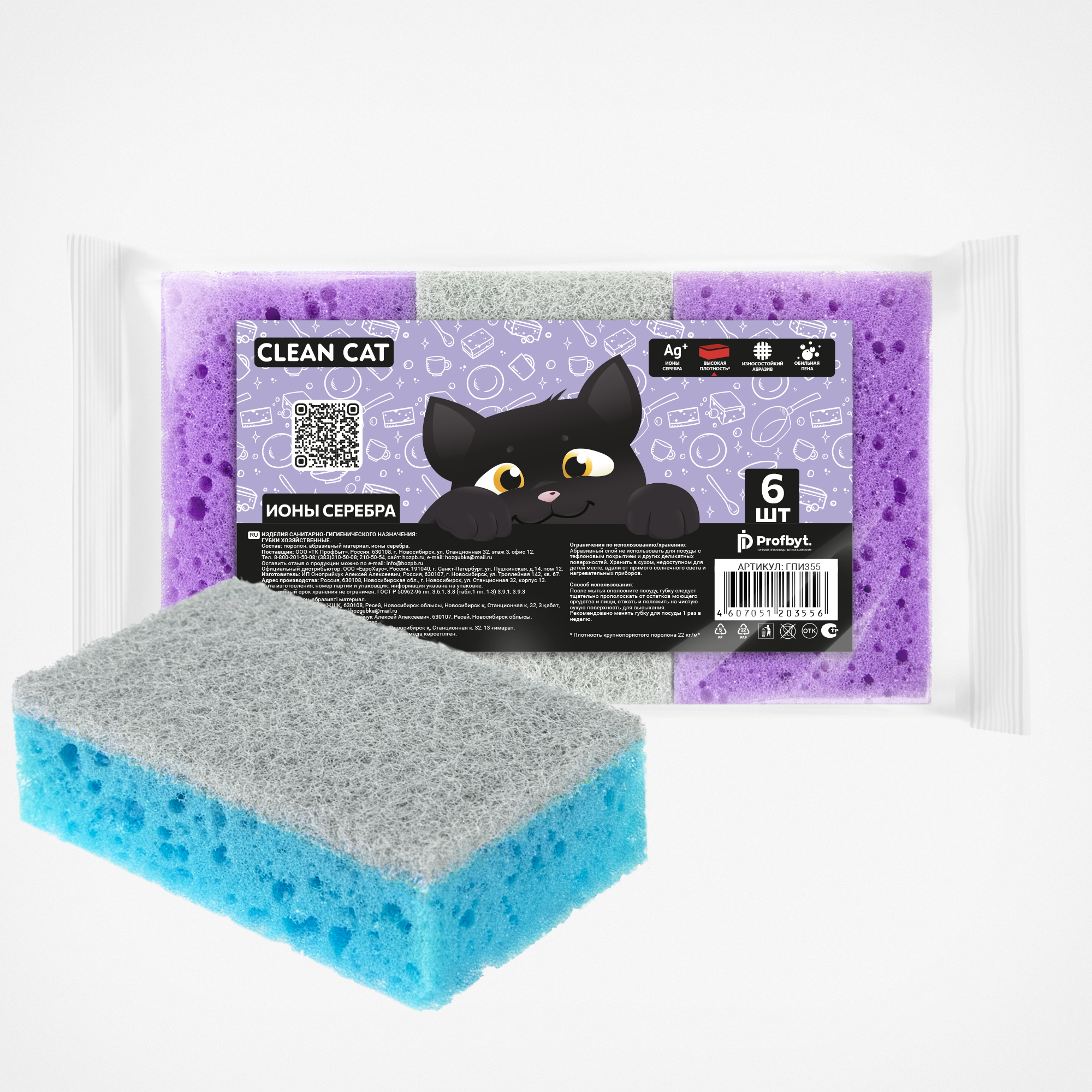 Губки для мытья посуды из микса голубого и фиолетового крупнопористого поролона высокой плотности с абразивной фиброй серого цвета с ионами серебра (антибактериальная). Выполнены в XL размере — 107х60х30 мм. в упаковке 6 шт.